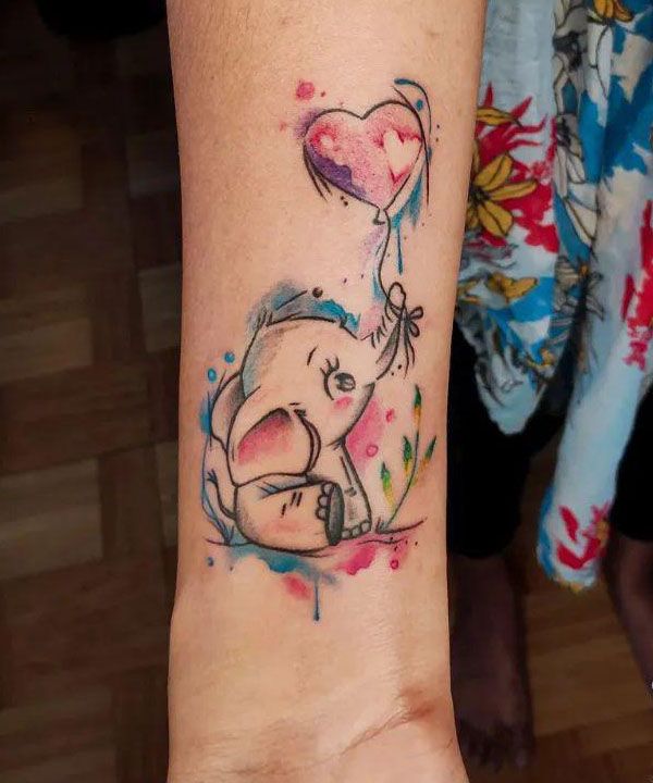 Baby elephant tattoos are often based on realistic portraits. Exquisite and lovely Baby elephant tattoos are very popular. Elephant is an auspicious, intelligent and friendly animal. Especially in Thailand and India, elephant is regarded as a belief and an animal in awe.