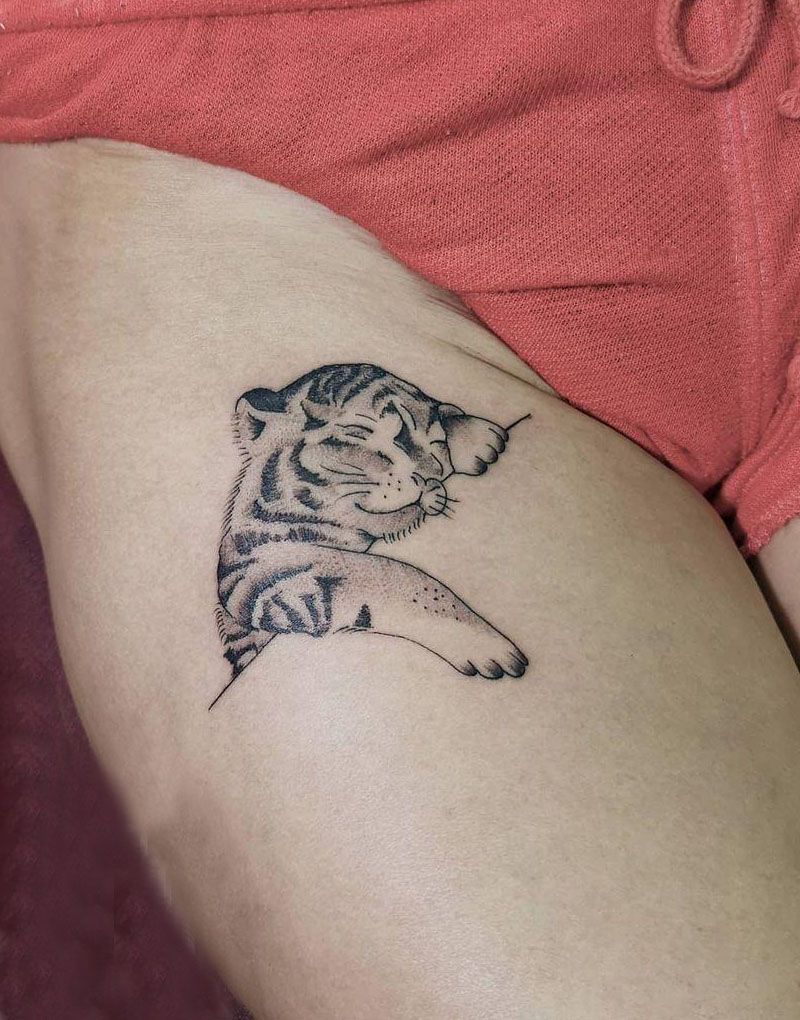 Different from the adult tiger, the Baby tiger is very cute, just like the kitten, very popular. Today we are going to show you the Baby Tiger tattoo, which is very suitable for girls. If you like tigers, but you don't like their ferocity, the Baby Tiger Tattoo is especially suitable for you.