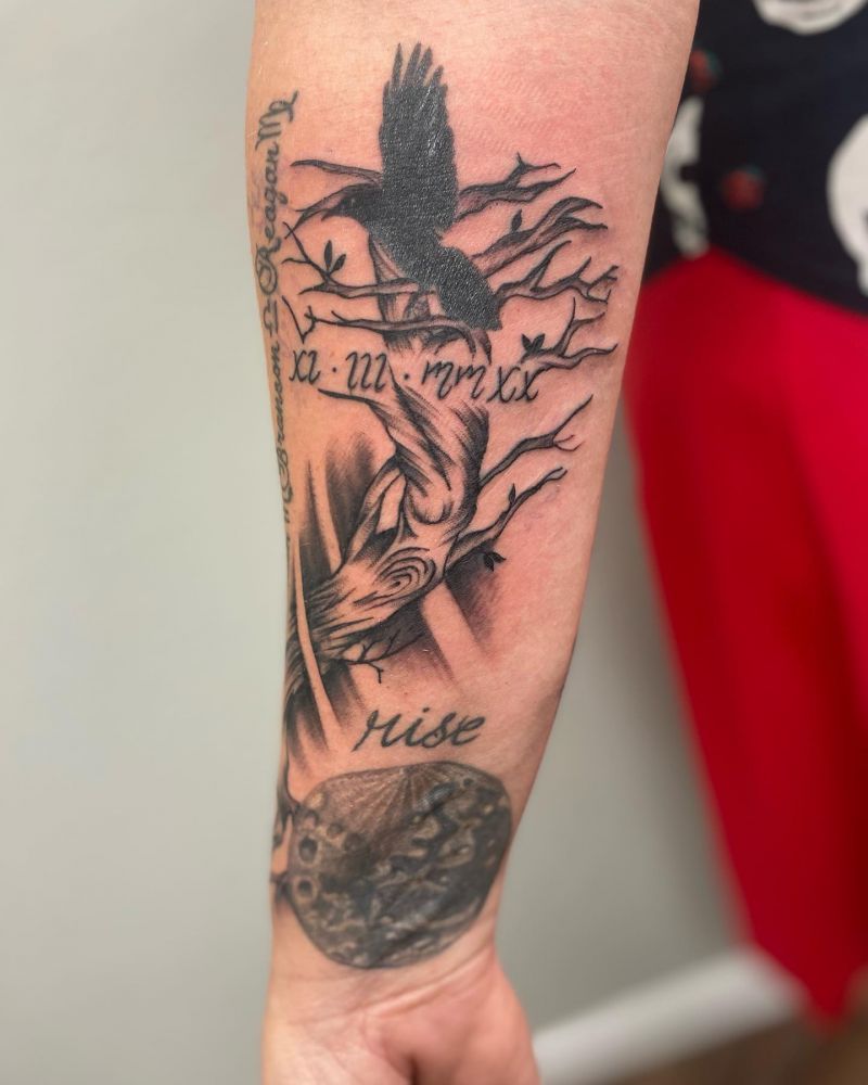 The meaning of dead tree tattoo is hope. We often see such scenes, that is, the dying tree suddenly grows fresh leaves and flowers after many years. Therefore, although the dead tree does not look well, it also breeds hope and life.