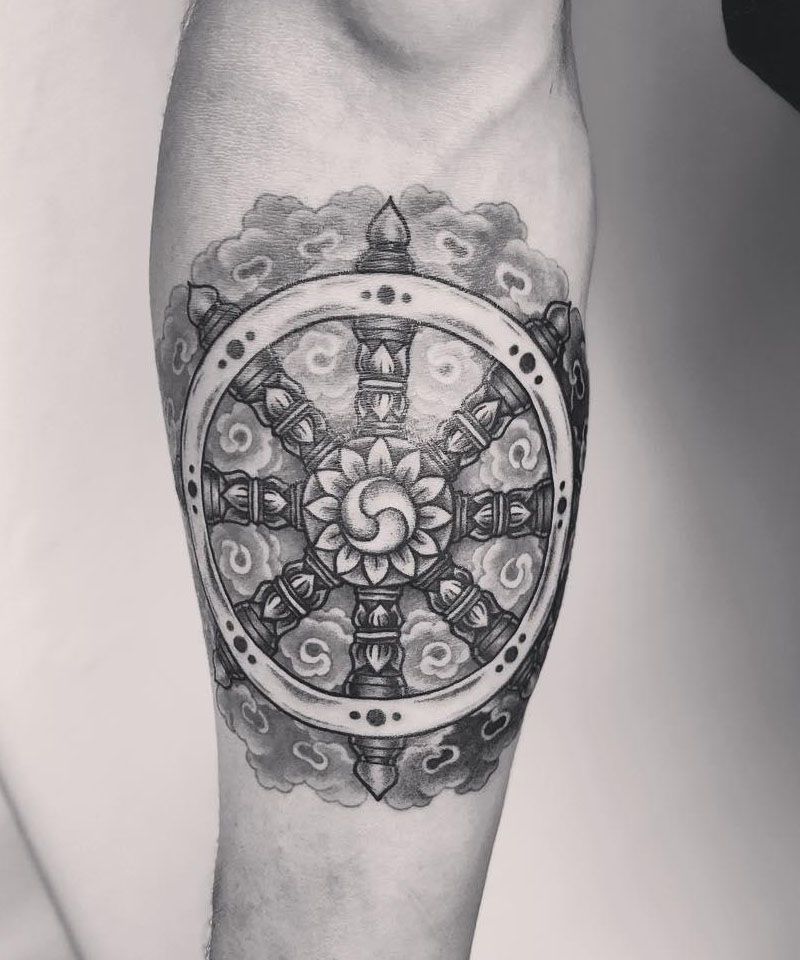 Buddha wheel is one of the oldest symbols in Indian history and culture. Its significance depends on the culture and religion in which it is used, but today it is usually regarded as a symbol of Buddhism. Buddha wheel tattoo is a popular tattoo theme for many people, and it is also a way for many Buddhists to express their beliefs. Today we have collected some unique Buddha wheel tattoos. I hope these tattoos can inspire you.