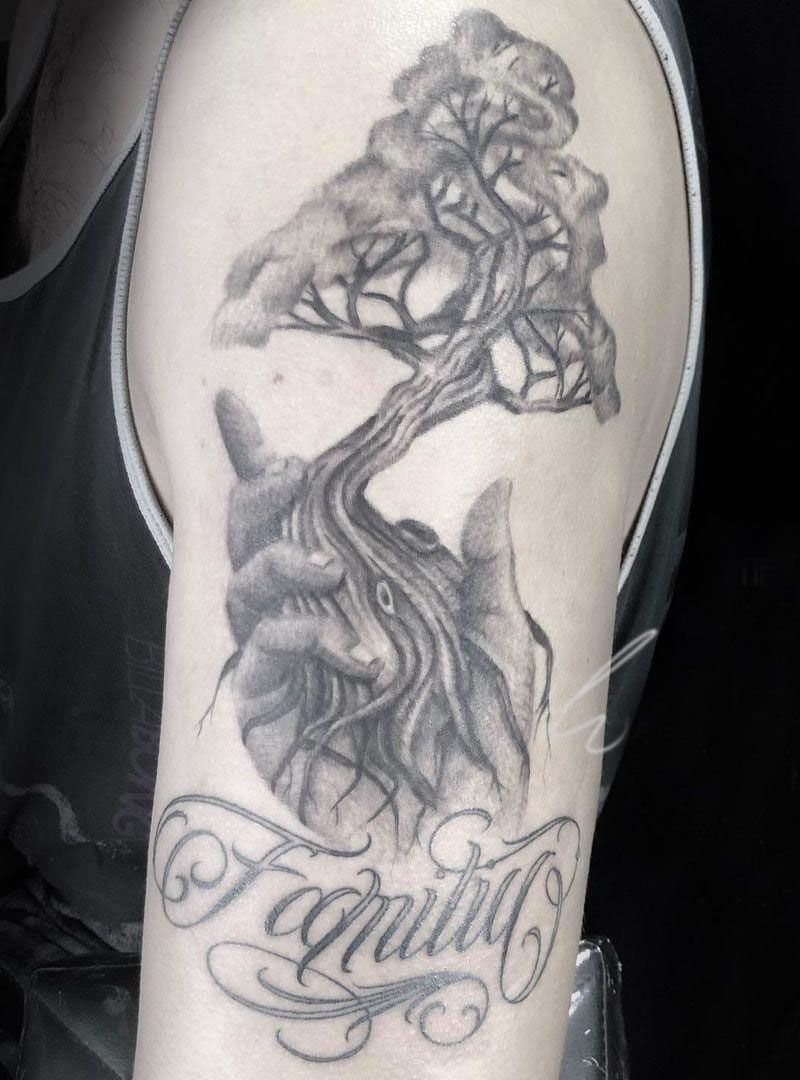 Family tree tattoo has a huge root system, thick trunk, lush and complicated branches and leaves, which means that this is a big family in one continuous line. The ring of trees is the mark of years. The change of age is just like the experience that time has given us.