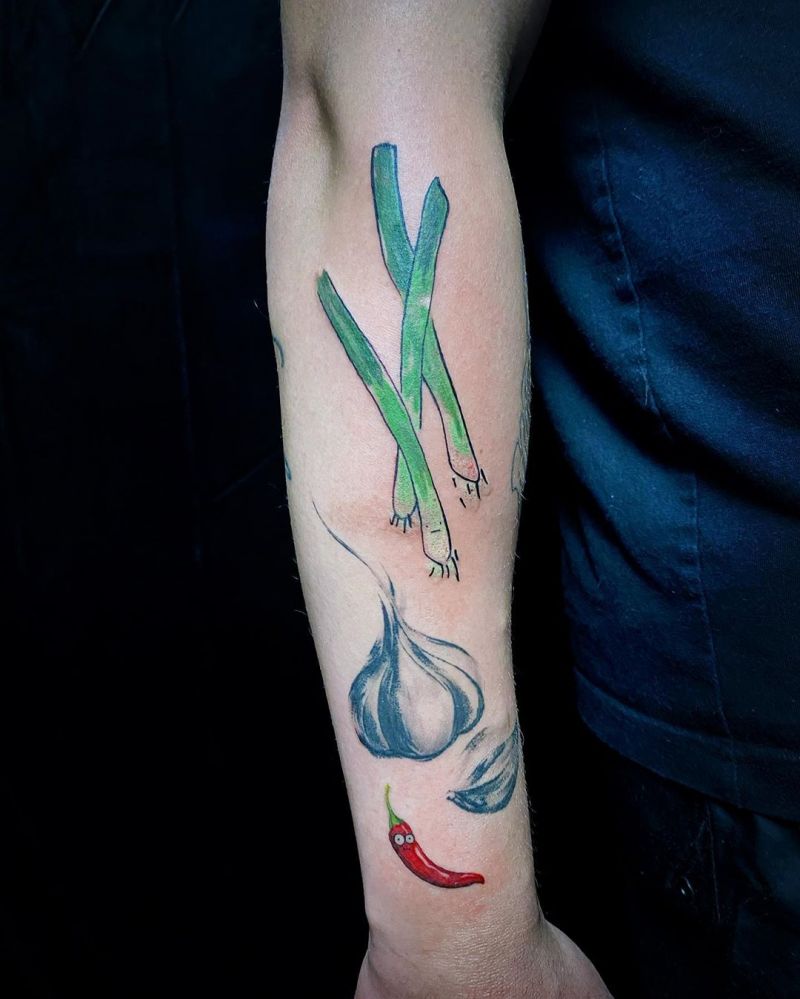 There are a lot of materials that can be used as tattoos. The patterns of vegetables and fruits can be tattooed on the body. Today we're going to show you garlic tattoos. Garlic tattoo you rarely see, because garlic has no special meaning. Garlic as a tattoo pattern on the body belongs to personal preferences.