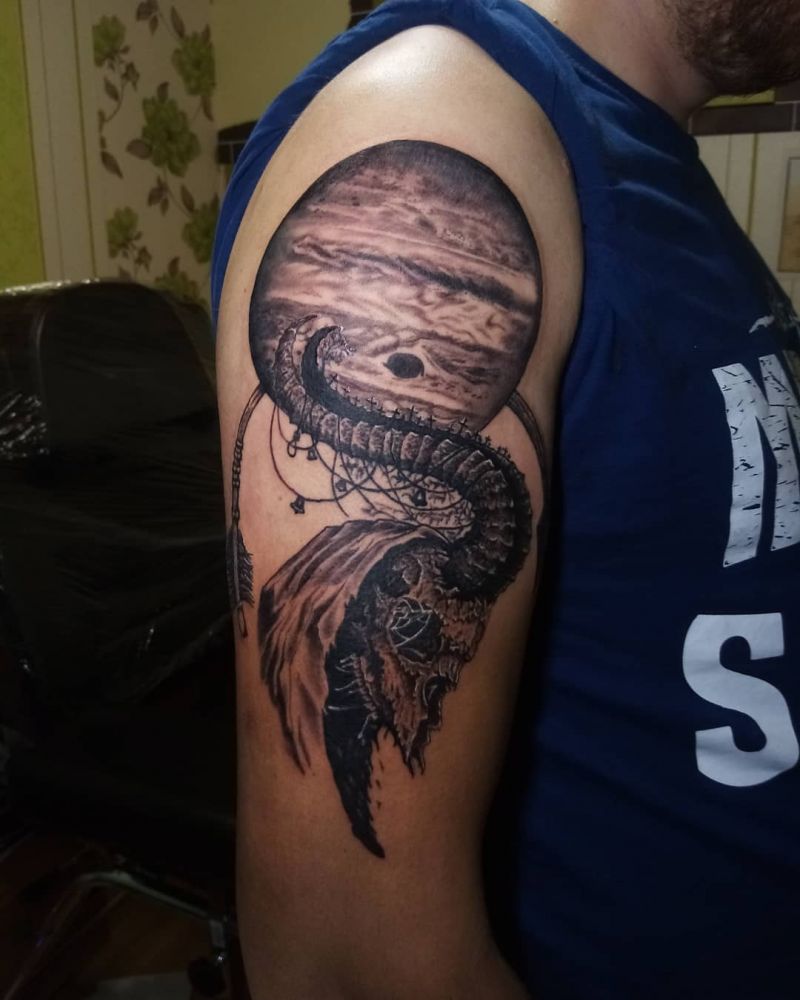 Animal skull pattern is a common tattoo element, they are used in a variety of cool tattoos, goat skull tattoo is one of the typical representatives. Goat skull is an ancient symbol. In Chinese Tibetan culture, it is regarded as a deity and the protector of Tibetans. It is often hung at home. In the mysterious western world, it is the representative of Satan and the symbol of death. In the 12 constellations, Aries is the use of sheep's head as a symbol, a symbol of independence and positive.