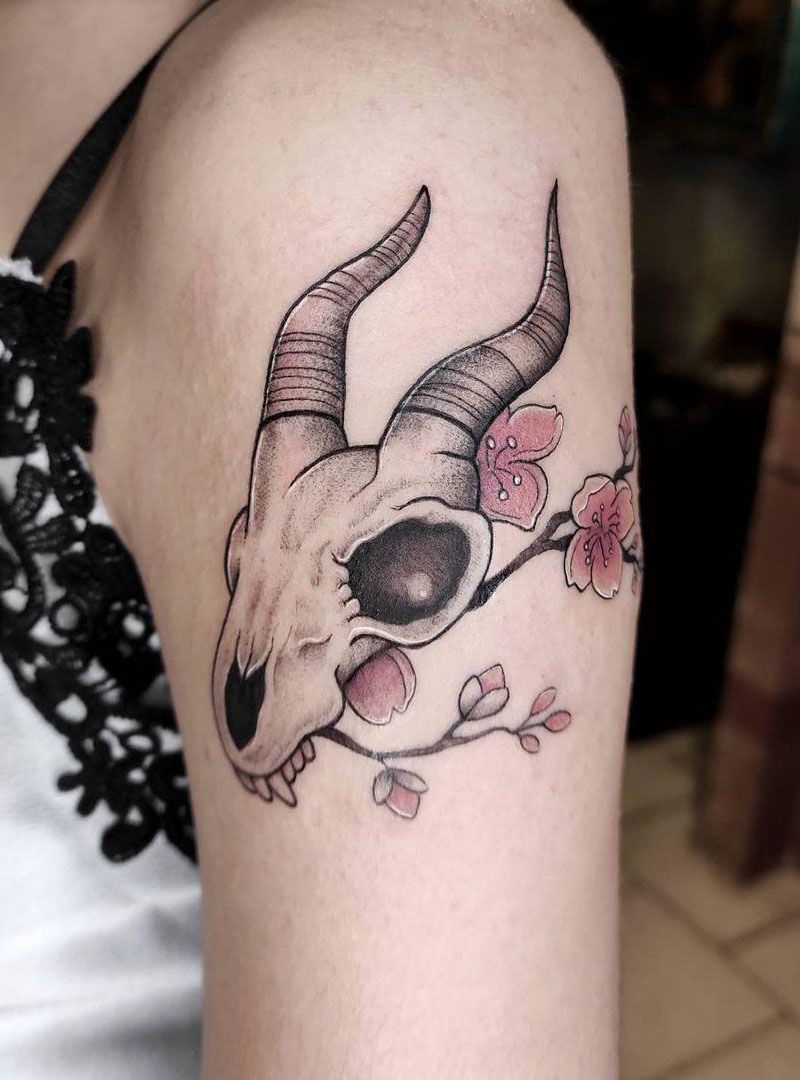 Animal skull pattern is a common tattoo element, they are used in a variety of cool tattoos, goat skull tattoo is one of the typical representatives. Goat skull is an ancient symbol. In Chinese Tibetan culture, it is regarded as a deity and the protector of Tibetans. It is often hung at home. In the mysterious western world, it is the representative of Satan and the symbol of death. In the 12 constellations, Aries is the use of sheep's head as a symbol, a symbol of independence and positive.