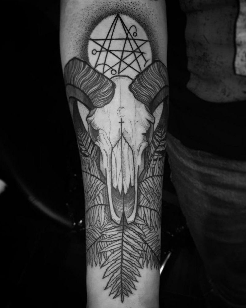 Animal skull pattern is a common tattoo element, they are used in a variety of cool tattoos, goat skull tattoo is one of the typical representatives. Goat skull is an ancient symbol. In Chinese Tibetan culture, it is regarded as a deity and the protector of Tibetans. It is often hung at home. In the mysterious western world, it is the representative of Satan and the symbol of death. In the 12 constellations, Aries is the use of sheep's head as a symbol, a symbol of independence and positive.