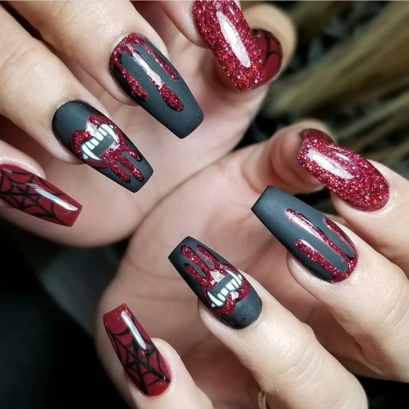 Today we have collected 50 stunning Halloween nail art designs, hoping to inspire you. Take a few minutes to browse through the album and choose your favorite to try this Halloween.
