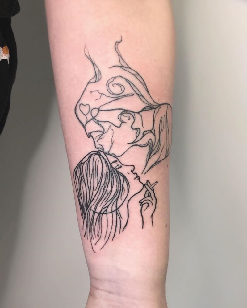 In kiss tattoos, the most popular pattern is used to express the sincere feelings between lovers. Using two people's appearance as the design of tattoo patterns, and keeping the intimate action between them on the body, can be said to be the best couple tattoo. And with simple lines to complete the design has a different aesthetic feeling, people like.