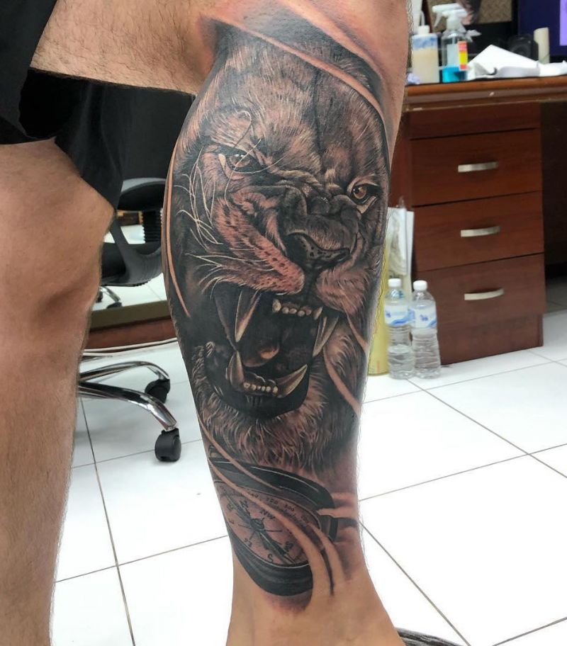 There are many tattoos of lions. Today we are going to show the lion and compass tattoos. As we all know, the meaning of compass tattoo is very good. It can always inspire us to stick to our direction, let us set goals, and work towards our goals unswervingly. Even if the lion is high above, if there is no direction, it is easy to lose itself on the road to success. Only with the help of tools such as compass can we move forward correctly all the time.
