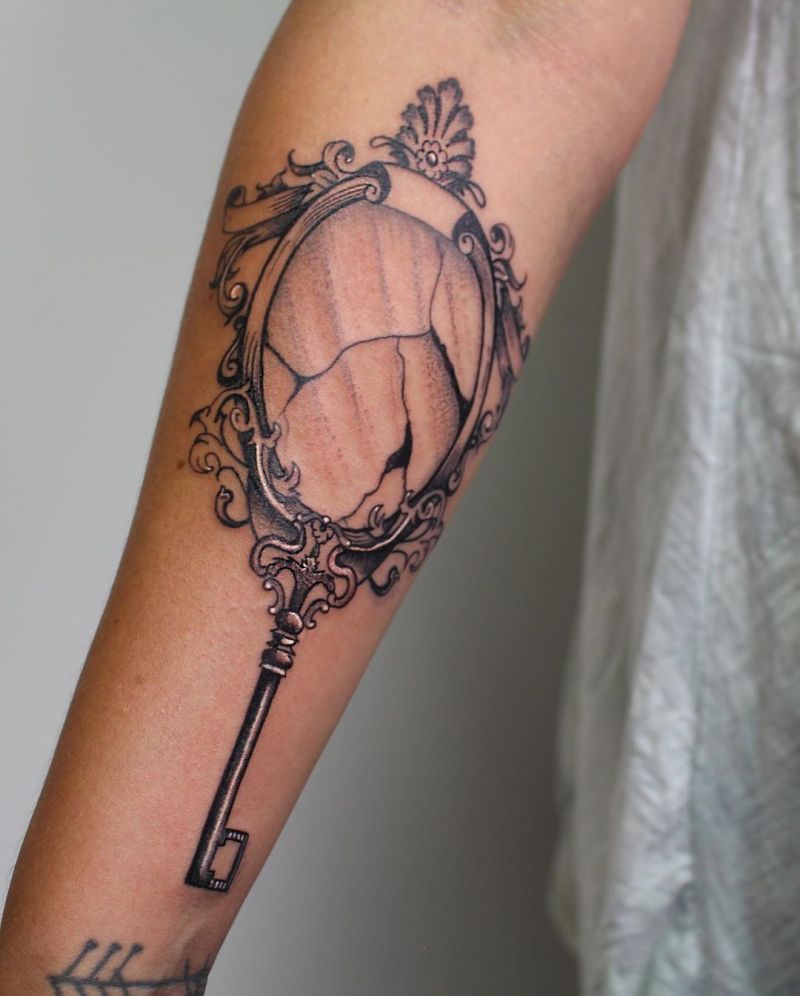 Mirror tattoos are not very popular. Maybe many people don't know that mirrors can also be used as tattoo patterns! Mirror tattoos can be used to print realistic mirrors separately, but most mirror tattoos have contents. We all know that mirrors can "take pictures", so mirror tattoos always have something tattooed in them, but the frame is just a mirror! A beautiful woman once asked me what the meaning of mirror tattoo is. Today I will explain it to you.