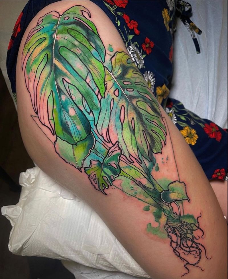Health and longevity is the main flower language and meaning of Monstera tattoo. Its leaf shape looks like a tortoise shell. The tortoise has a long life, so Monstera also has the flower language meaning of health and longevity, which is a kind of beautiful and sincere wish. It can also have the meaning of adding blessing, which can bring people good luck, good luck and auspiciousness. It can also have the beautiful implication of Attracting Wealth and expanding sources of wealth, and can improve people's wealth.