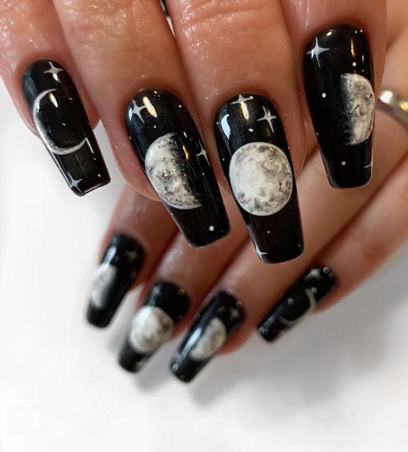 Moon nail art design is loved by many women. The moon makes the whole manicure look mysterious. In fact, manicure should have soul, and the main line will produce different effects. The design of the moon is very obvious. What manicure people show is the changing process of the moon, including the night, the moon, and the full moon. Returning to the night is a changing process of the moon, which makes the whole manicure look more alive, rather than dead.