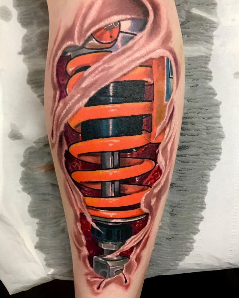 You may not have thought that shock absorber tattoos are very popular. The most common tattoo of shock absorber is the tattoo with skin tearing effect. This kind of tattoo is very real and gives people the feeling that a shock absorber is implanted in your muscle. This effect is very shocking.