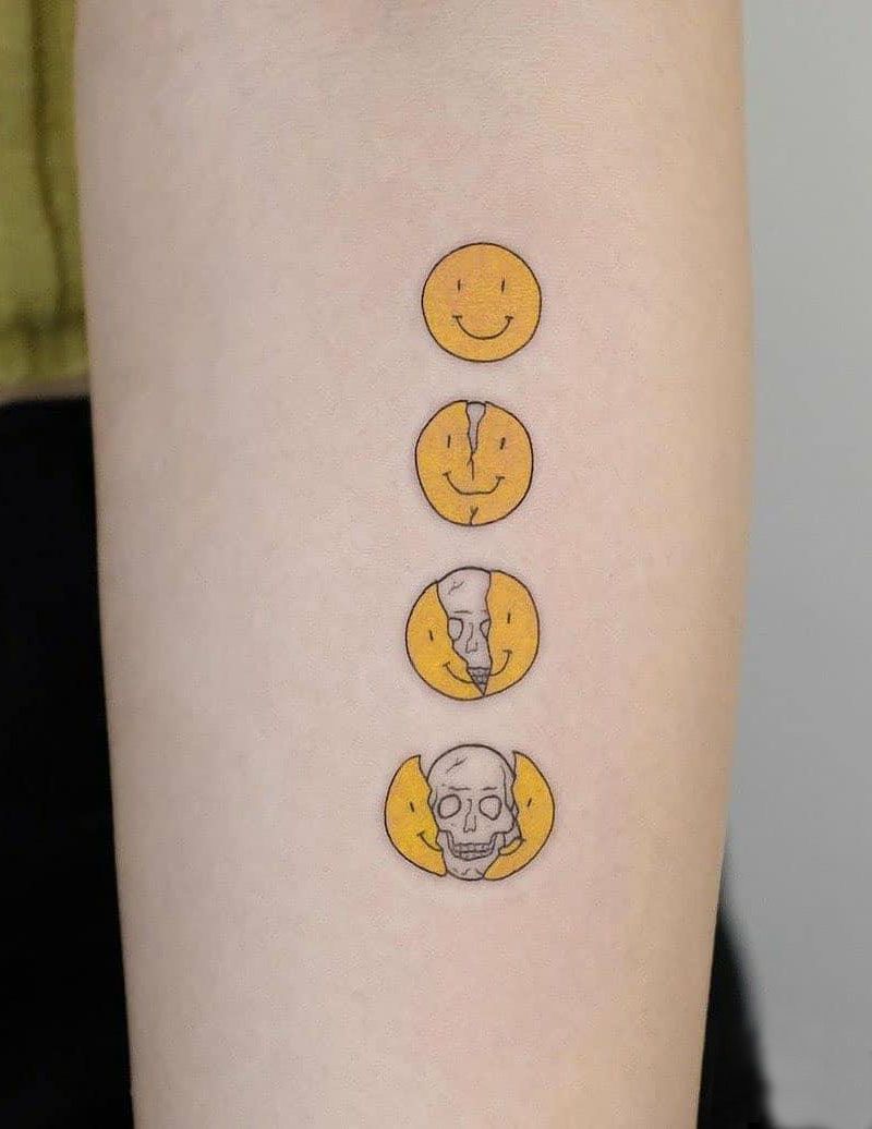 Smiley Face tattoo means confidence and strength. People who can always keep a smile usually have strong self-confidence, which often turns into an invisible force and makes them step by step towards success.