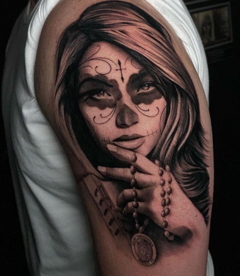 Because of its unique appearance, sugar skull has become an unofficial symbol of the holiday, so it can be created in various media, even used as special makeup during the celebration. Today, I collected a lot of Pretty Sugar Skull girl tattoos. If you are very interested in Mexico's death day, you will love these tattoos.