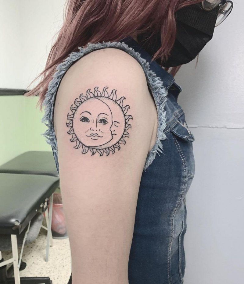 The moon corresponds to the sun. Generally speaking, the sun represents men and the moon represents women, because in the tattoo world, the sun and the moon often appear in pairs. Love people with the sun and moon tattoo it to commemorate pure love, complement each other, is the only one in each other's eyes.