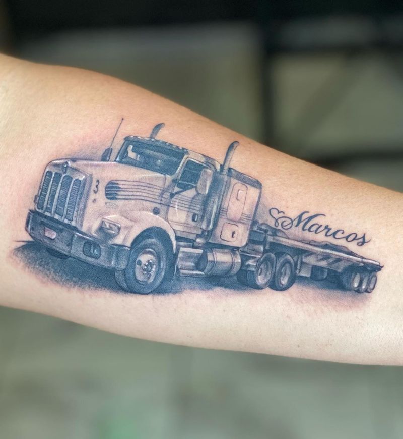 The meaning of the trailer tattoo is power. The task of the trailer is to pull the fault vehicle or accident vehicle away from the site in time to ensure the smoothness of the road. The existence of the trailer plays an important role, so the trailer tattoo reflects the powerful power.